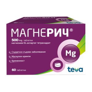 Магнерич 500 mg таблетки Magnericb 500 mg tablets магнезиев DL-аспартат тетрахидрат (magnesium DL-aspartate tetrahydrate)